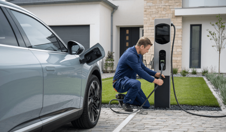 Installation de ma borne de recharge pour voiture électrique. Tout a été fait parfaitement et dans les délais !